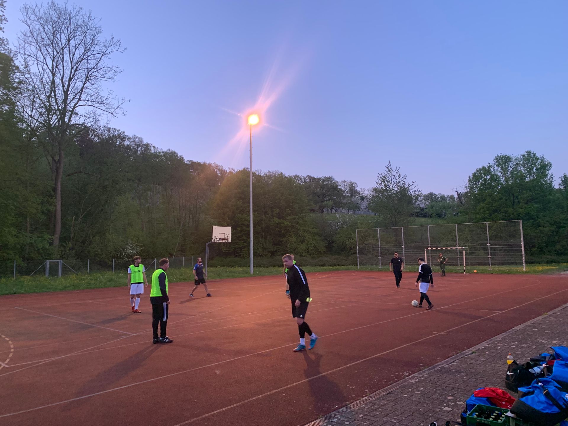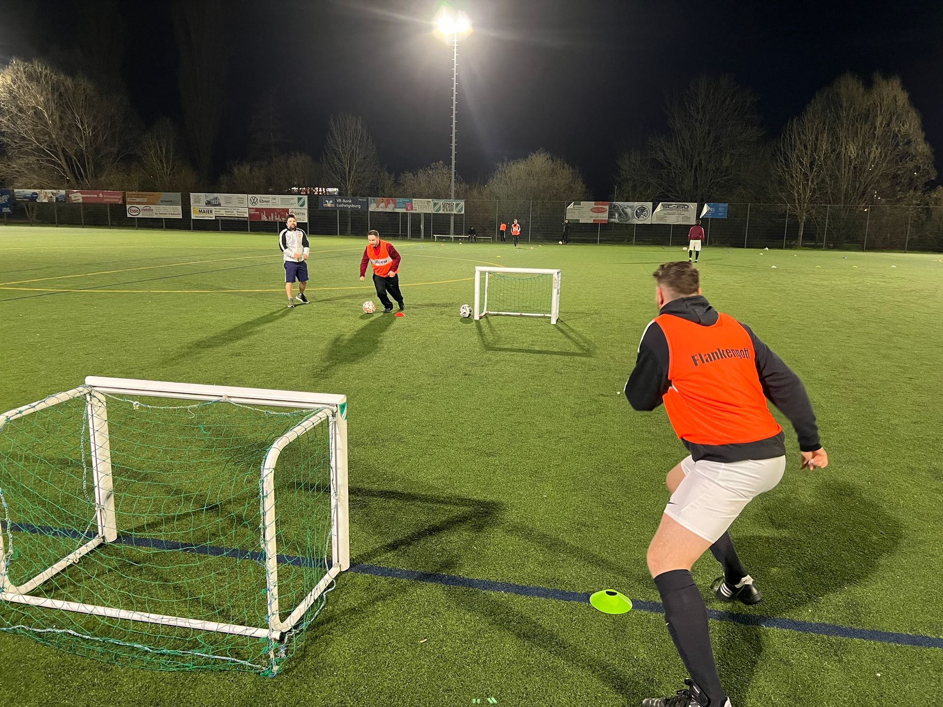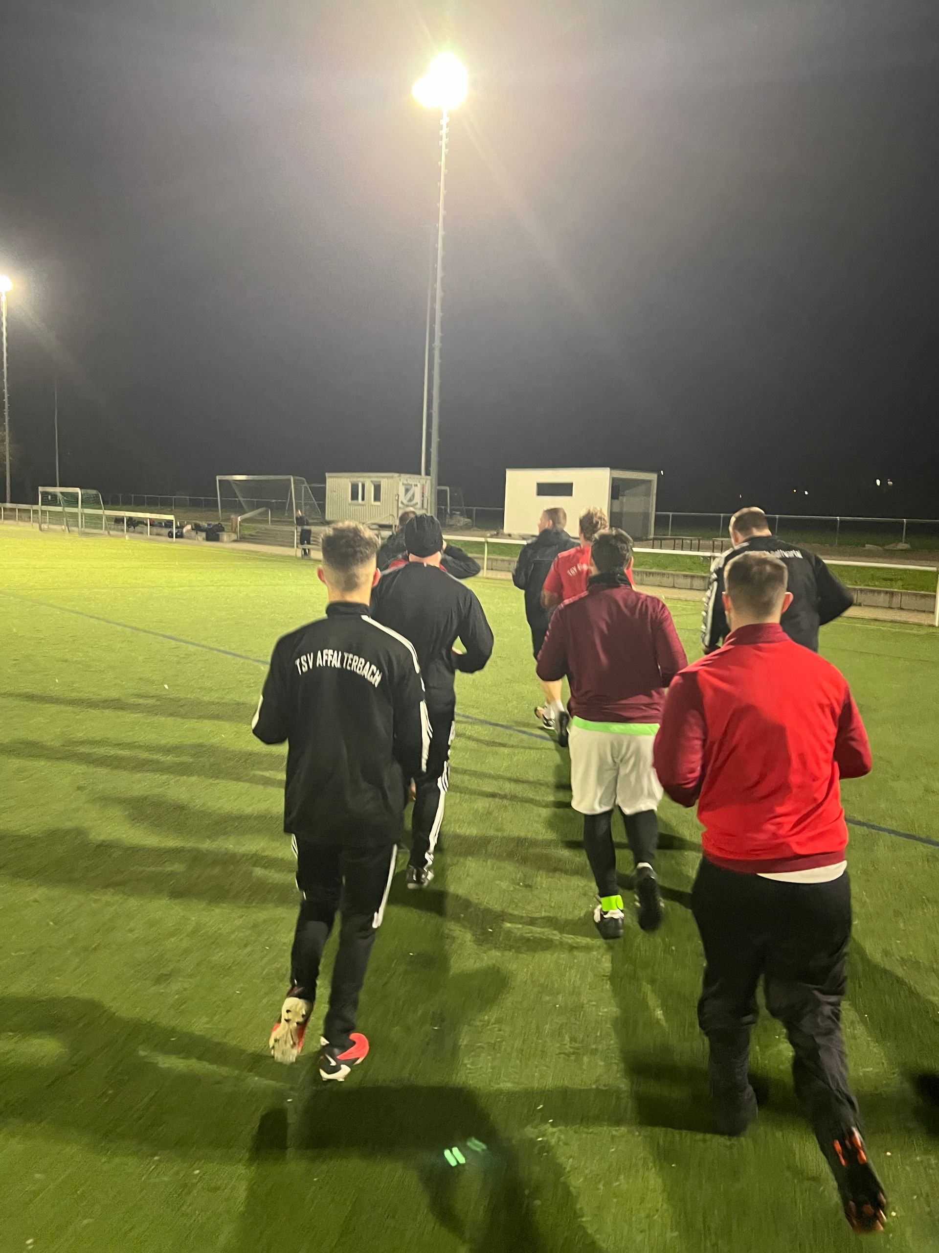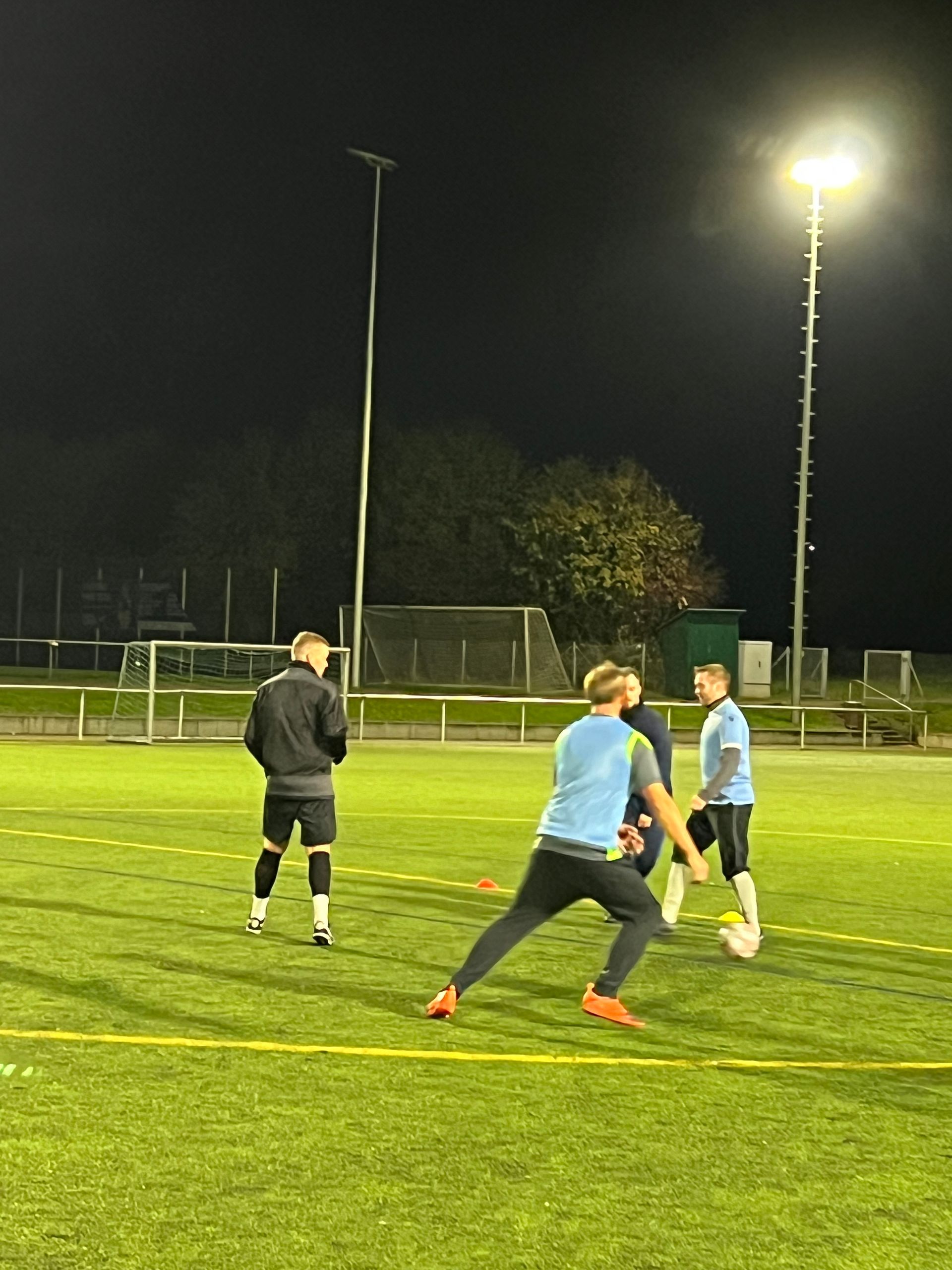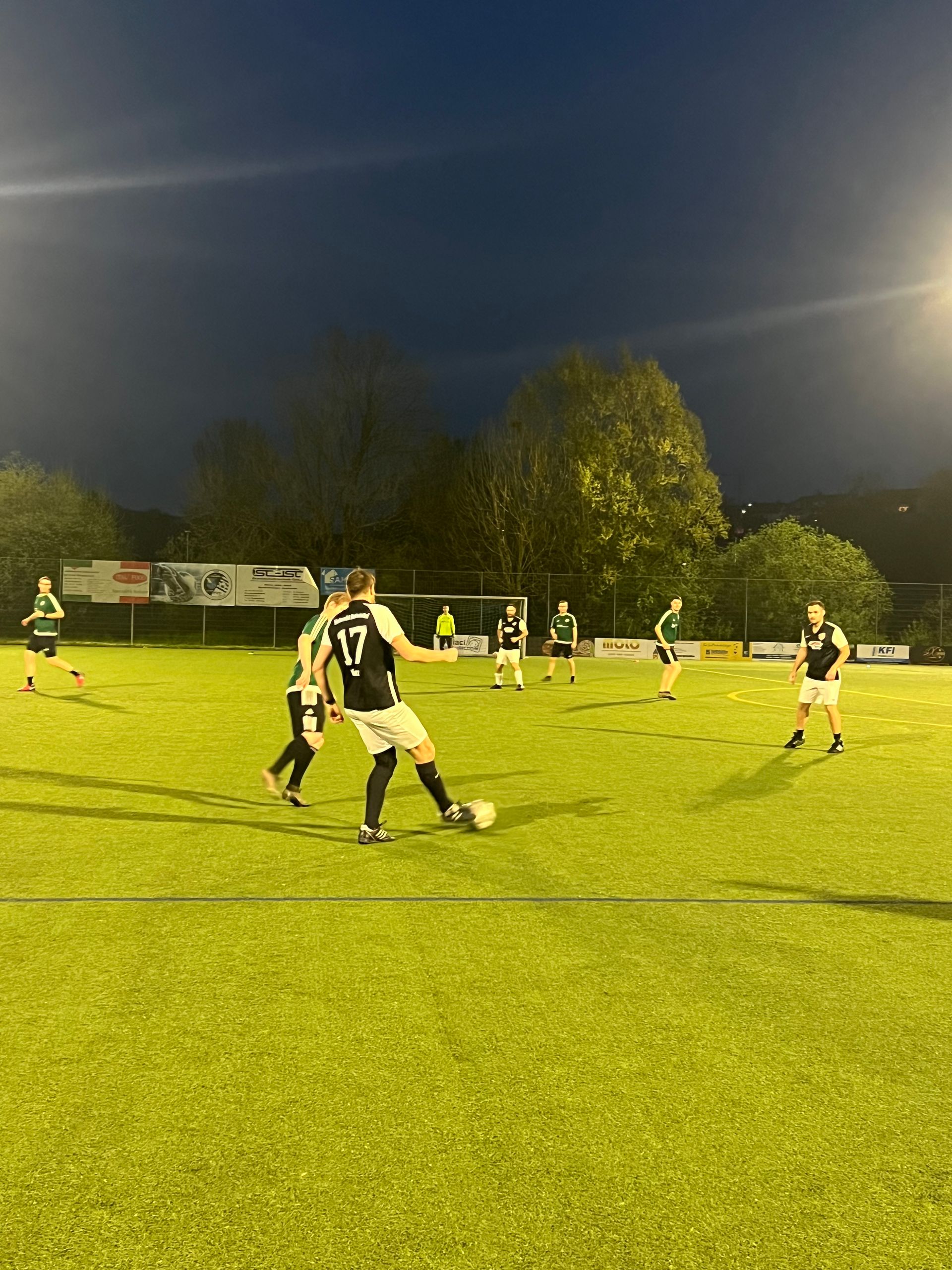 mit Kunstrasen und Flutlicht