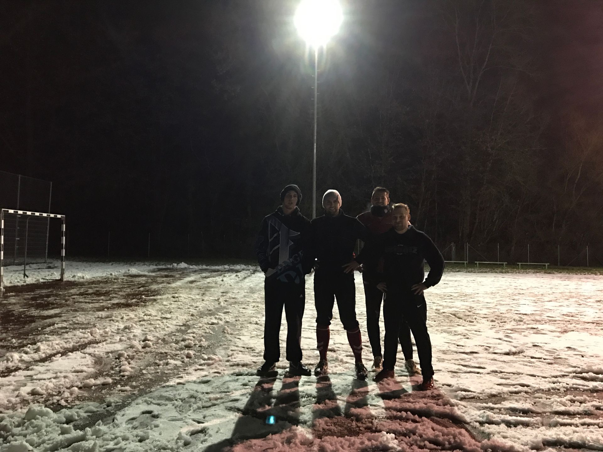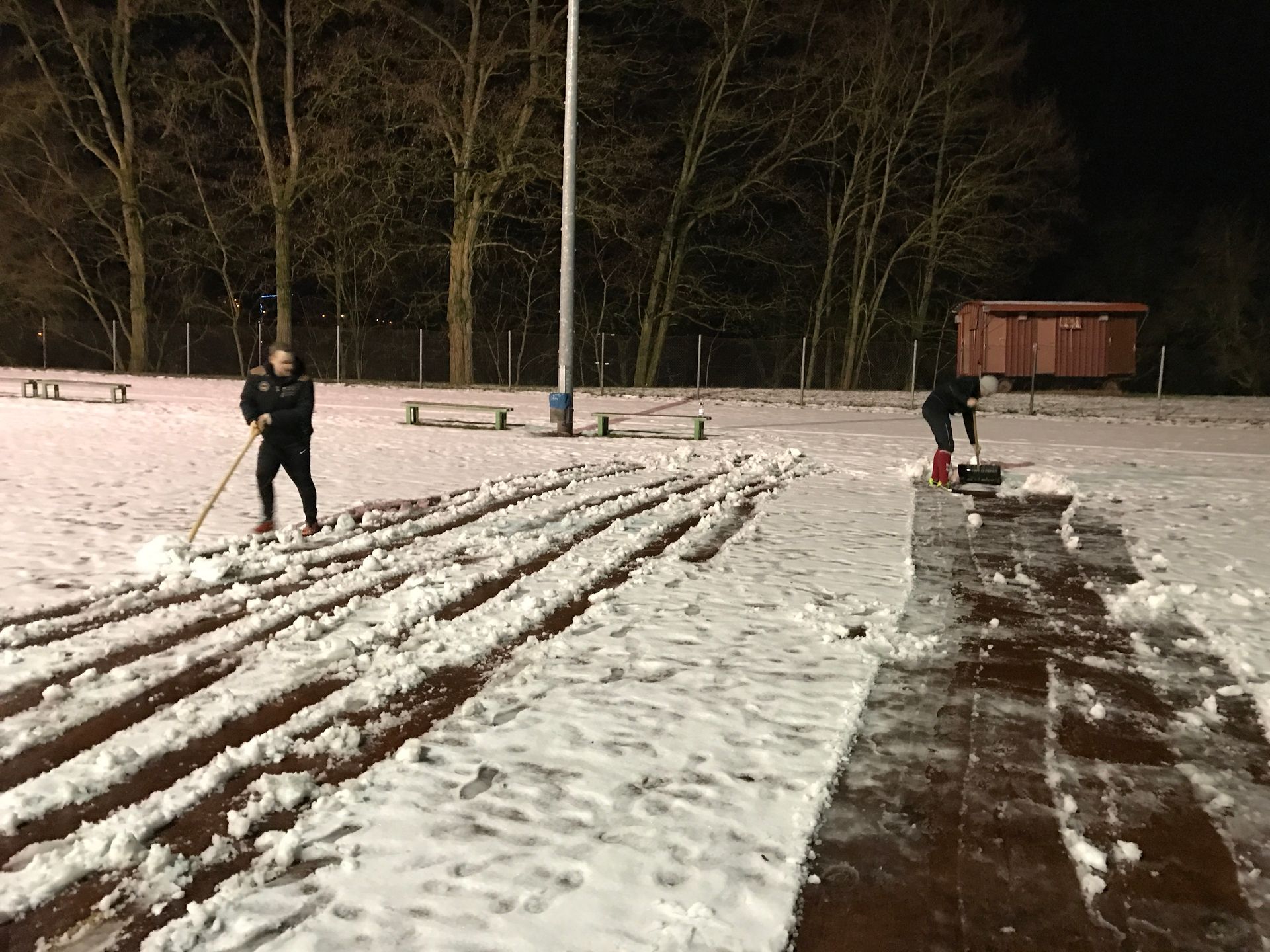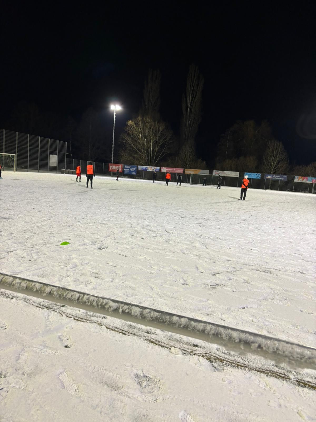 Wenn keine Halle verfügbar ist oder wir einfach Bock auf eine echte Winter-Challenge haben, dann nehmen wir den Schnee selbst in die Hand – im wahrsten Sinne des Wortes! Entweder schnappen wir uns die Schaufeln und machen den Platz frei oder wir spielen einfach direkt auf der weißen Pracht. Denn mal ehrlich: Ein Match auf Schnee ist ein absolutes Highlight!